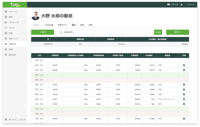 Log+の場合には出勤から退勤までの時間で、どの作業を何時間行ったのかをリアルに見える化でき、スタッフごとの時間単価も登録できるので、人件費や採算性をより正確に把握できるようになりました。