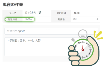 また、常駐のパートナーについて稼働時間の計測が必要なのですが、Log+であれば、それがボタン一つで実現できます。